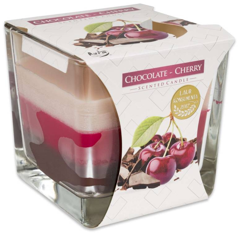 BISPOL Tříbarevná svíce čoko-pomeranč 170gSklo 32H SNK80-340