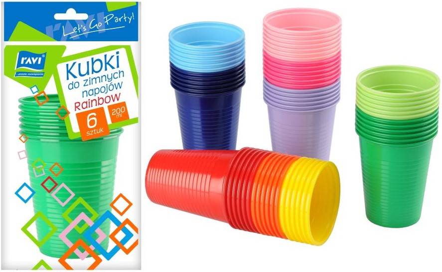 Jednorázové kelímky na studené nápoje RAINBOW6ks. 200ml
